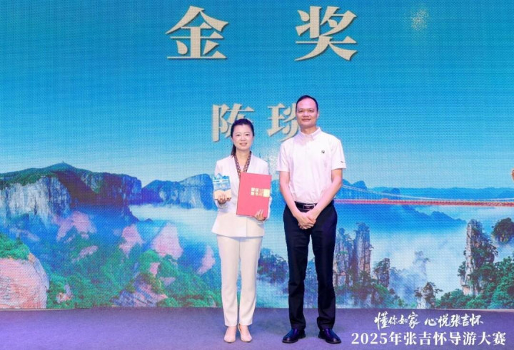 华声在线6月29日讯(记者刘涛通讯员刘超)6月28日,“懂你如家心悦张吉怀”2025年张吉怀导游大赛落下帷幕,来自湘西州的陈琰获得金奖。